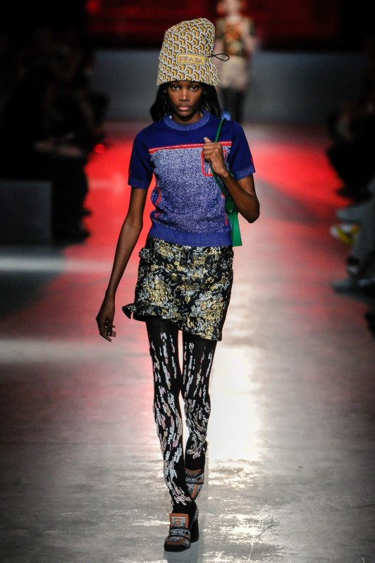 Por otra parte, Prada optó por la mezcla de colores vibrantes como verde, azul, naranjo y rojo con colores neutros como el negro, el blanco y el café, creando una armonía entre ellos que derivó en atrevidas piezas vanguardistas.