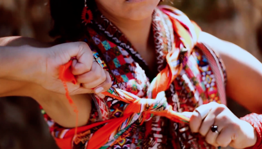 “La estética se dio muy naturalmente porque la locación en la Cordillera, la canción con sonoridades andinas, sumado a lo que evoca Los Andes. De ahí también salió el concepto de la música que estamos haciendo. Mi música es andina pero no es folklore propiamente tal. La directora de arte fue Valentina Peralta, muy talentosa con las manos, borda y cose. Fuimos a comprar una tela y armamos el vestuario. Los accesorios son de Kiltra quien nos pasó tejidos andinos originales, piezas únicas y joyas”, agrega Lienqueo.