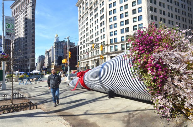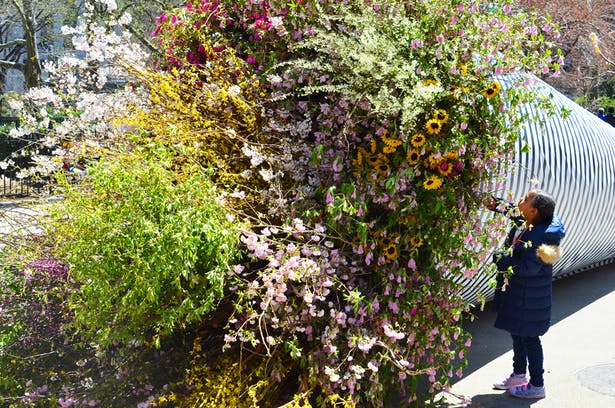 En Nueva York se celebra el NYC / DOT Car Free Earth Day y es conmemorado con «Broadway Bouquet», un gigantesco ramo de flores diseñado por la empresa arquitectónica de paisaje y diseño urbano Terrain Work.