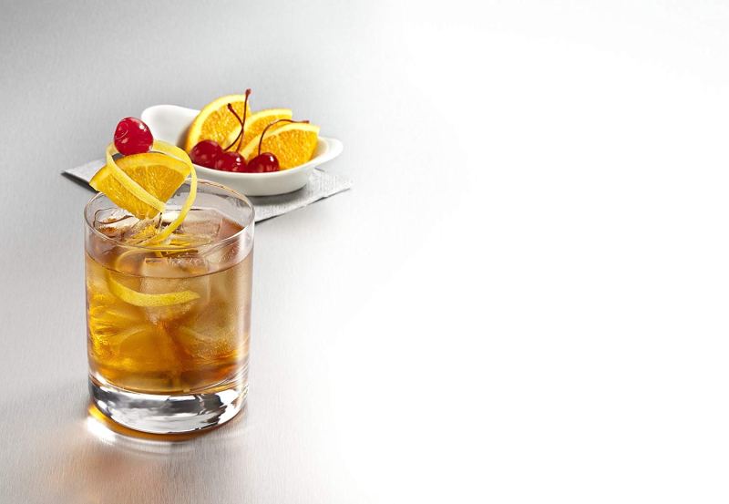 Garnish/decoración: Twist de naranja, cereza marrasquino y bruma de navan con cereza.