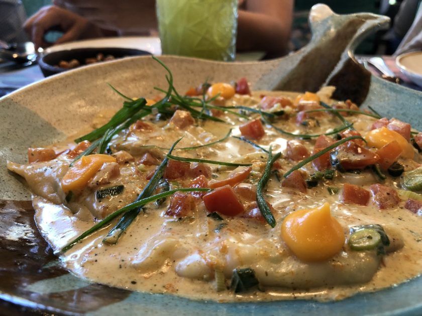 Otro de los platos que más me impactaron fueron los Ravioles de Cangrejo ($15.800) en crema de puerros, tomate y pisco. Este plato vale cada peso, es suave al comienzo y luego toma una intensidad que sorprende.