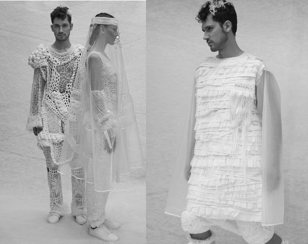 Trama Láctea: «Súper bonita». Si bien la colección era super poco comercial, nada, nada… como que a todo el mundo le gustaba. No sé si estaban esperando ver algo así, pero a mucha gente le llegó el cuento y les llegó mucho más de lo que nosotros queríamos expresar. La gente opinaba en base a una abertura de mente también, porque habían hombres con vestidos, con máscaras, había ropa deportiva mezclada con piel también.