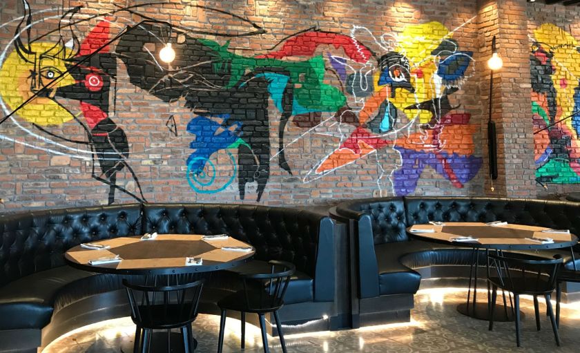 Al entrar, lo primero que llamó mi atención fue el mural realizado por Matiz. La obra me pareció que fue un homenaje a Picasso ya que tiene un parecido muy fuerte al Guernica realizado por el español a mediados de los años 30. Me parece excelente que los restaurantes trabajen con artistas locales para decorar sus locales en vez de comprar solo objetos chinos y cuadros de retail.