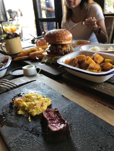 Luego continuamos con Entrañas 200 grs. ($12.800), una Muu Angus Burger USA ($7.800) de 225 grs. todo bien preparado y a punto, pero lo que más quiero destacar es el Flat Iron Muu USA ($7.800) este es el corte favorito de la casa y realmente se nota. Se trata de punta paleta, la porción es de 250 grs. y viene cortada, por lo tanto, es más fácil de servir y comer.