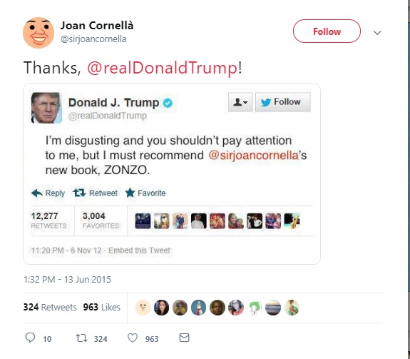 Este tipo de humor no ha llegado a gustar en comunidades conservadoras, como fue la crítica hacia el Presidente de Los Estados Unidos de América, Donald Trump, partidarios atacaron al artista en redes sociales, hecho que escaló hasta el mismo presidente que a través de Twitter mencionó al artista, costándole muchos seguidores en sus perfiles, pero más que preocuparse, se burló de la situación en sus cuentas personales ya que también Trump recomienda su libro ZONZO. Este son ejemplos de lo que genera la obra de Joan Cornellà, irreverente en su humor y mensaje político, donde analiza a una sociedad cada vez más individualizada.