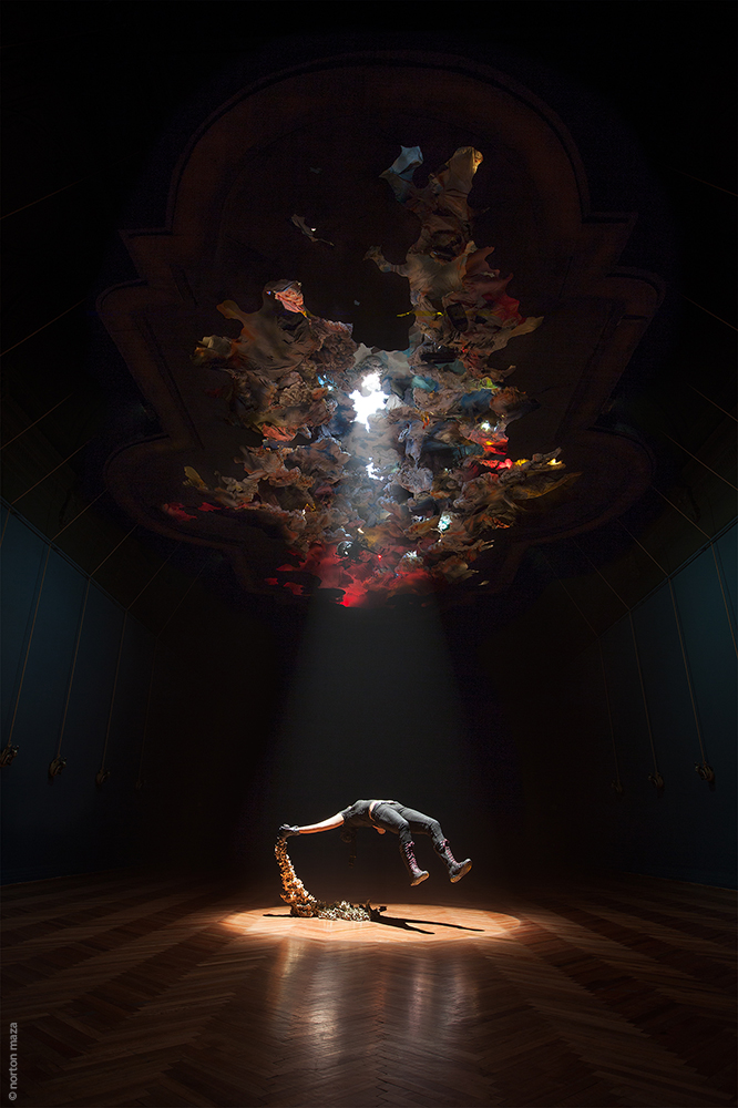 Trabajar con un referente del arte contemporáneo nacional como Norton Maza ha sido una experiencia increíble, ser su productor técnico no solo me ha acercado a colaborar con su obra llamada «El Rapto» sino también a forjar lazos de amistad para potenciarse mutuamente. Si bien El Rapto es de total autoría de Norton, la colaboración me ha servido para incrementar mi nivel técnico y creativo, el cual se ve reflejado en su propia obra, y esto es súper significante para mí.