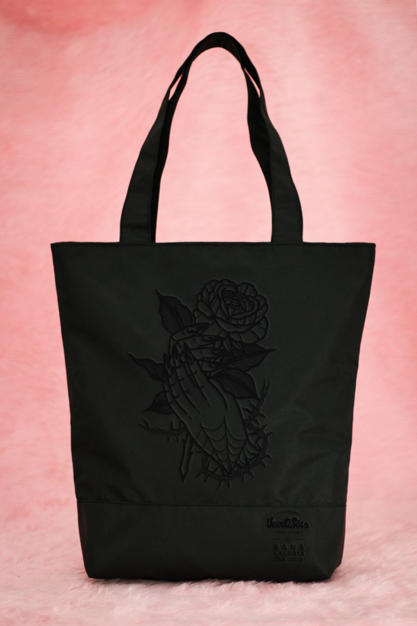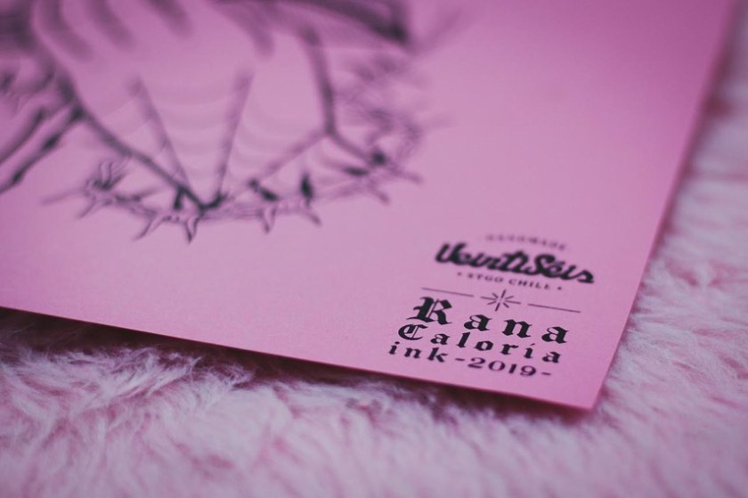 La tatuadora chilena Ana Carolina Leigthon a.k.a Ranacaloriaink junto a la marca de moda urbana Veintiséis presentan una nueva colaboración creativa. Se trata de una edición limitada de 50 ejemplares del clásico Totebag de la marca pero con nuevos colores (Negro y Negro/Rosa), que además cuentan con la impresión de una ilustración de color negro en relieve que hacen de este producto un infaltable en tu colección. Por cada compra se llevarán de regalo un print hecho en serigrafía sobre papel rosa formato A4.