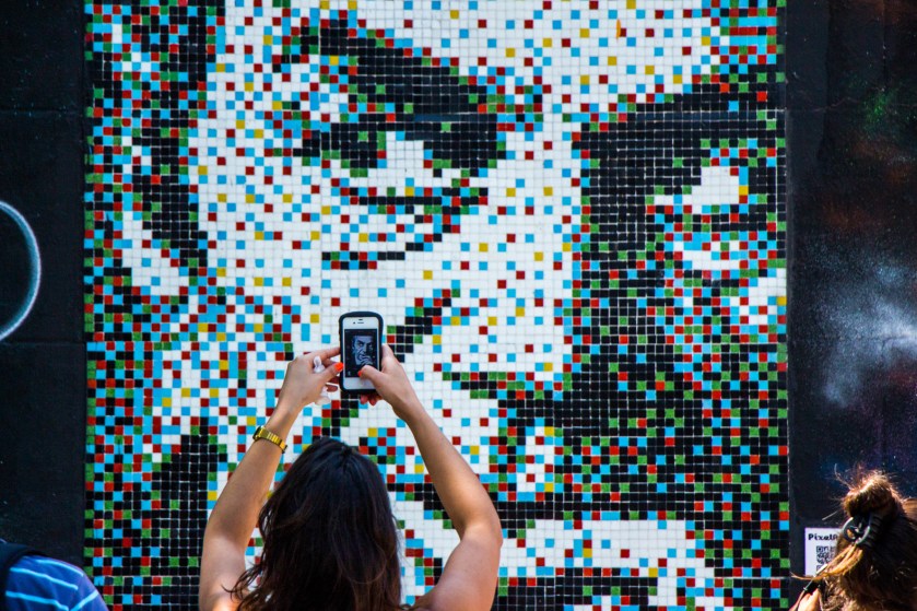 «A través de la técnica del stencil he podido trabajar series y así al reducir los costos he podido ofrecer obras a precios más accesibles. Me han dicho mucho que haga print, que hay mucha gente a la que le gusta mi trabajo y que no tienen para comprar mis obras de mosaico. Con esto todos tienen acceso», enfatiza el artista.
