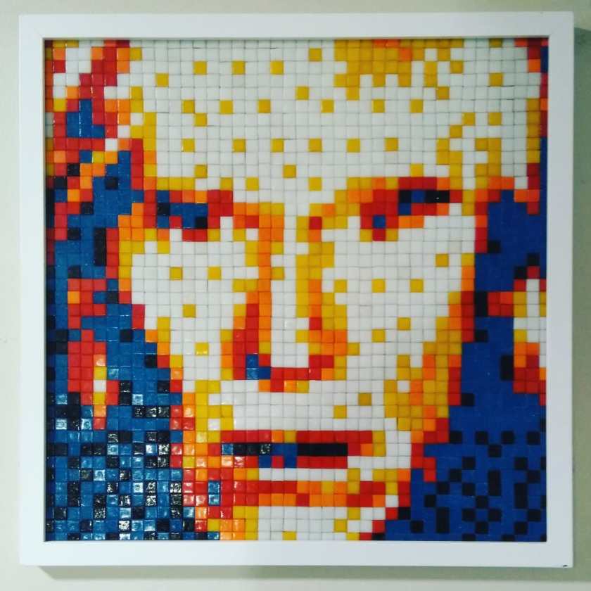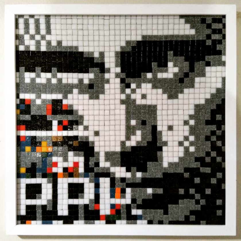 Sobre su exposición en Patio Bellavista, comenta que se trata de «una selección de obras, tengo una de Vincent van Gogh que fue el primer cuadro que realicé cuando descubrí la técnica. Ese es de 2012. También expongo obras que realicé especialmente para esta expo que tiene como objetivo también vender, muestro La Niña de la Perla, un retrato de Andy Warhol, entre otras más abstractas que vienen de una expo que hice hace un tiempo que se llamó «Expresionismo Digital». Estoy en la búsqueda de técnicas distintas y nuevos materiales a través del mismo lenguaje del pixel. Logré descubrir una técnica para poder pixelar a través de plantillas stencil, así puedo hacer el arte más accesible para la gente», comenta Jorge.