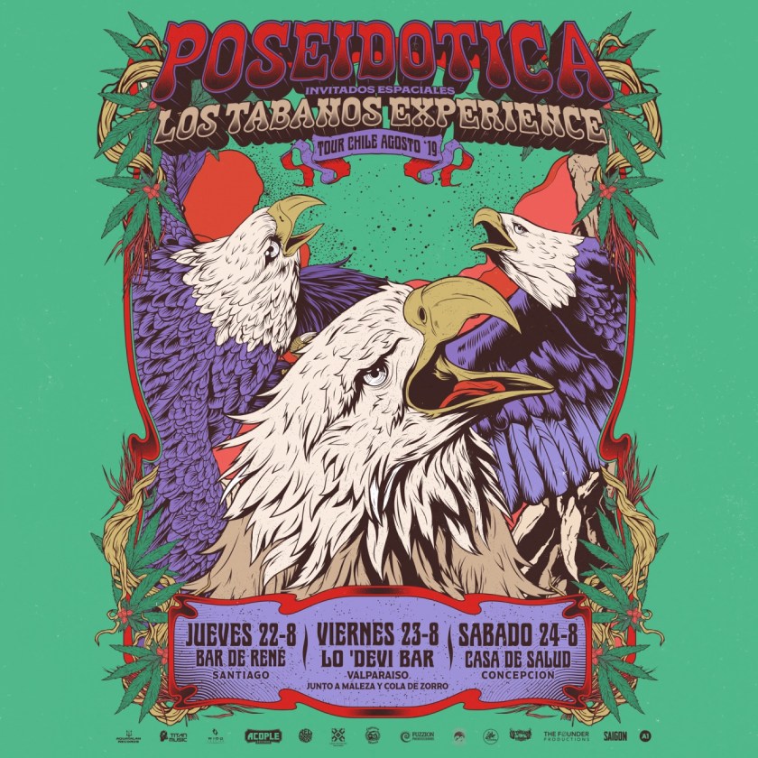 Poseidótica, grupo instrumental argentino de rock psicodélico y progresivo llega a Chile por segunda vez en este año para realizar una gira en el mes de Agosto junto al grupo chileno Los Tábanos Experience. Ambos grupos darán un show que pone nuevamente al rock progresivo al radar musical en Latino América, repasando años de carrera musical en un concierto cargado de potencia, presentándose en Santiago, Valparaíso y Concepción.