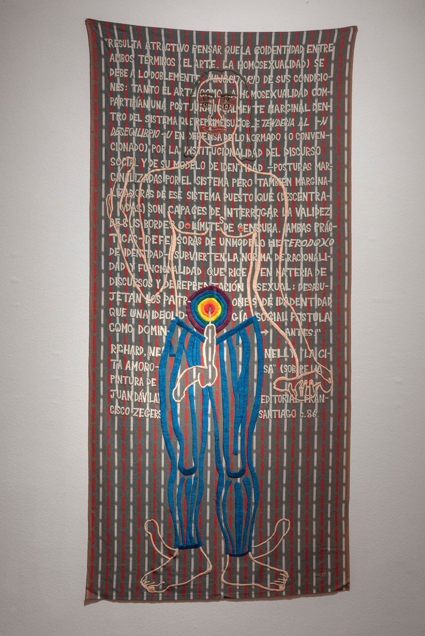 Con obras de tela intensamente bordadas, la exposición “La Trama (Auto)Biográfica” de Carlos Arias se expondrá desde el 7 de septiembre hasta el 27 de octubre en el Museo de Artes Visuales (MAVI) tendrá una fuerte acento en temáticas sociales como minorías, género, sexualidad, raza y migración, desde la óptica de la autobiografía.