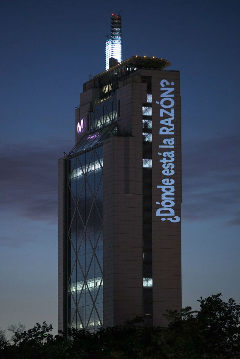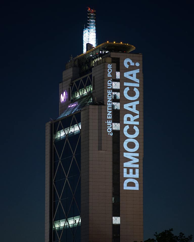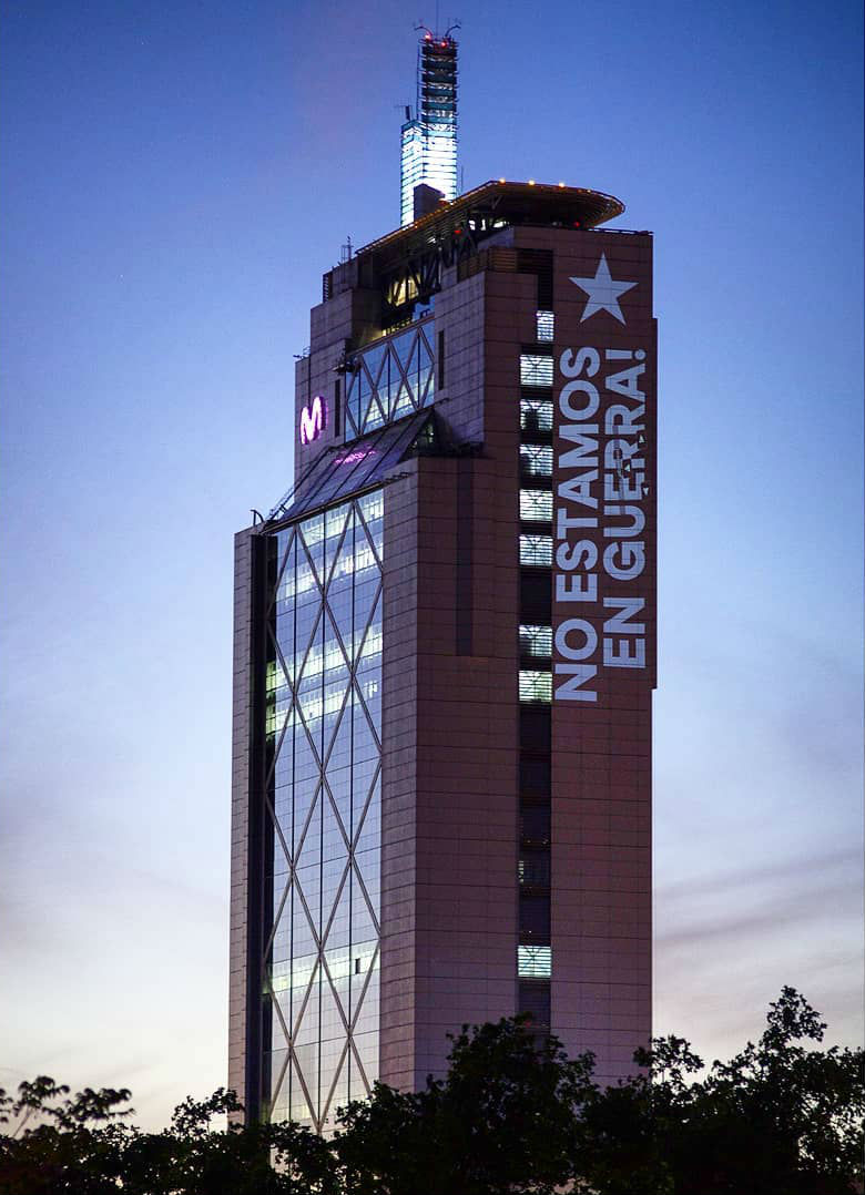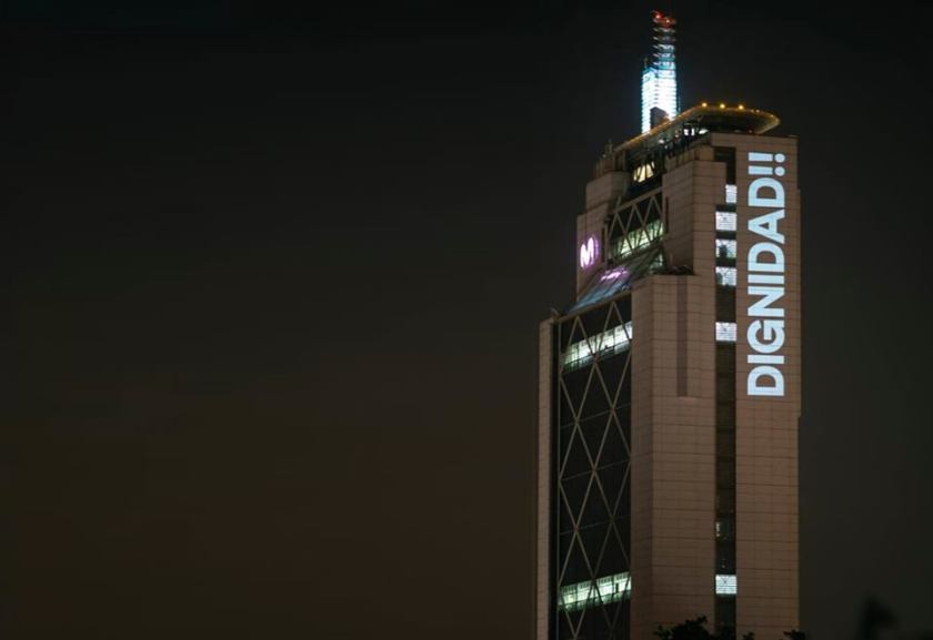 En este contexto, nos encontramos nuevamente con la dupla Delight Lab integrada por los hermanos Octavio Gana y Andrea Gana -quienes se han convertido en activistas sociales desde la trinchera del arte- que proyectó mensajes referentes al movimiento en pleno edificio de la Telefónica durante nueves días y probablemente seguirán haciéndolo. Dignidad, Qué entiende Ud. por Democracia?, NO ESTAMOS EN GUERRA, ESTAMOS UNID@S son algunas de las consignas que todo Chile pudo ver en vivo, por televisión, en diarios y diversas plataformas de comunicación, siendo principalmente las redes sociales su mejor aliado a la hora de viralizar su aporte.