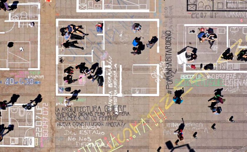En medio del estallido social un grupo de arquitectos y estudiantes de arquitectura se organizaron y realizaron una proyección muy interesante en el centro de las concentraciones de manifestantes. En Plaza Italia dibujaron en el suelo con tiza planos de departamentos de 17m2 en tamaño real llamando la atención de quienes en ese momento se encontraban protestando por mejoras sociales.