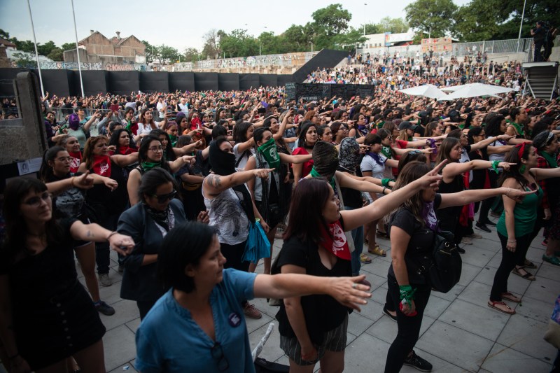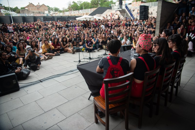 Finalizado el conversatorio, más de mil mujeres llenaron la explanada del Museo para interpretar a viva voz «Un violador en tu camino«, intervención que ha sido replicada en diversas partes de Chile y el mundo, y que en pocos días logró dar un nuevo aire a las movilizaciones sociales en Chile. La jornada terminó con una gran marcha desde el Museo y hasta las fueras del palacio de La Moneda.