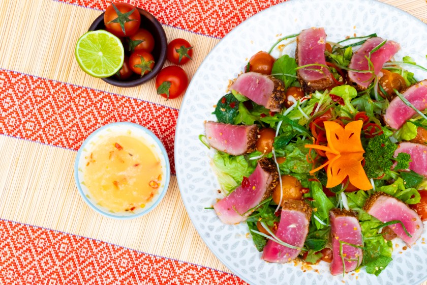 Una de las novedades es la ensalada de atún y mix verdes, compuesta por lechuga hidropónica, hojas de menta, tomates cherry con unos bastones de atún sellado con semillas de sésamo y dressing de limón, jengibre y ají thai, el toque picante que hace de este plato algo totalmente imperdible. En segundo lugar, está el filete de pescado crocante con verduras salteadas, una preparación rica y original, ideal para los fanáticos de lo crujiente. Por último, no se puede dejar de mencionar los arrollados primavera vietnamita veganos, rellenos con lechuga, menta, cilantro y envueltos en masa fresca de arroz y tofu, acompañado de una rica salsa de soya para untar y saborear.