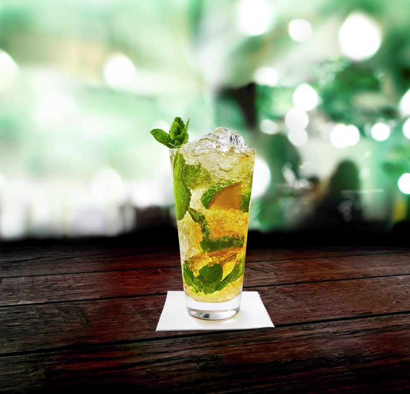 - En un vaso, agregar 45ml de Zacapa Ambar 12 junto a las hojas de menta, azúcar o almíbar, jugo de lima y mezclar