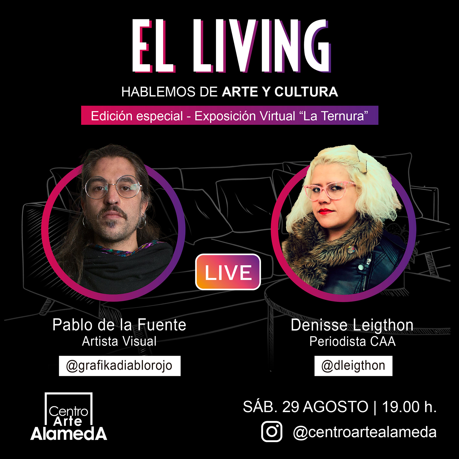 “LA TERNURA” es la primera exposición virtual de Centro Arte Alameda que será presentada en un LIVE a través de su cuenta oficial en Instagram donde la periodista Denisse Leigthon conversará con Grafika Diablo Rojo sobre su propuesta como realizador en medio de una época de caos.