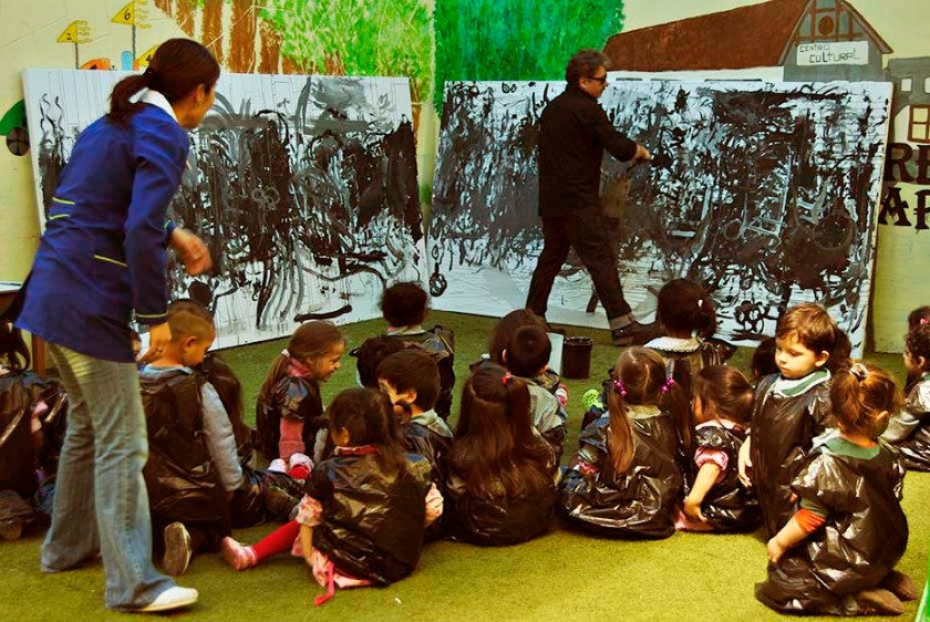 “El resultado de estas colaboraciones es sorprende y al espectador no le resultará fácil discernir qué obra fue realizada en conjunto con las parvularias, los niños y sus familias”, apunta el artista visual. La muestra también incluye la maqueta que el reconocido arquitecto y artista visual de Chilóe Edward Rojas hizo de su propia casa en Castro y un levantamiento similar, efectuado por la joven arquitecta de la Universidad Católica Rocío Arancibia, del recinto industrial histórico donde funcionó la antigua Perrera Municipal, correspondiente al primer horno crematorio de basura de la capital, el cual fueron inaugurado en 1927 y, luego de un largo período de abandono, está siendo restaurado para el fomento del arte y la cultura.