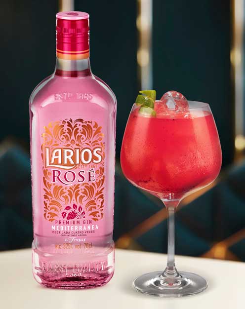 2.- Una vez descartada el agua sobrante, servir Larios Rosé y resto de ingredientes.