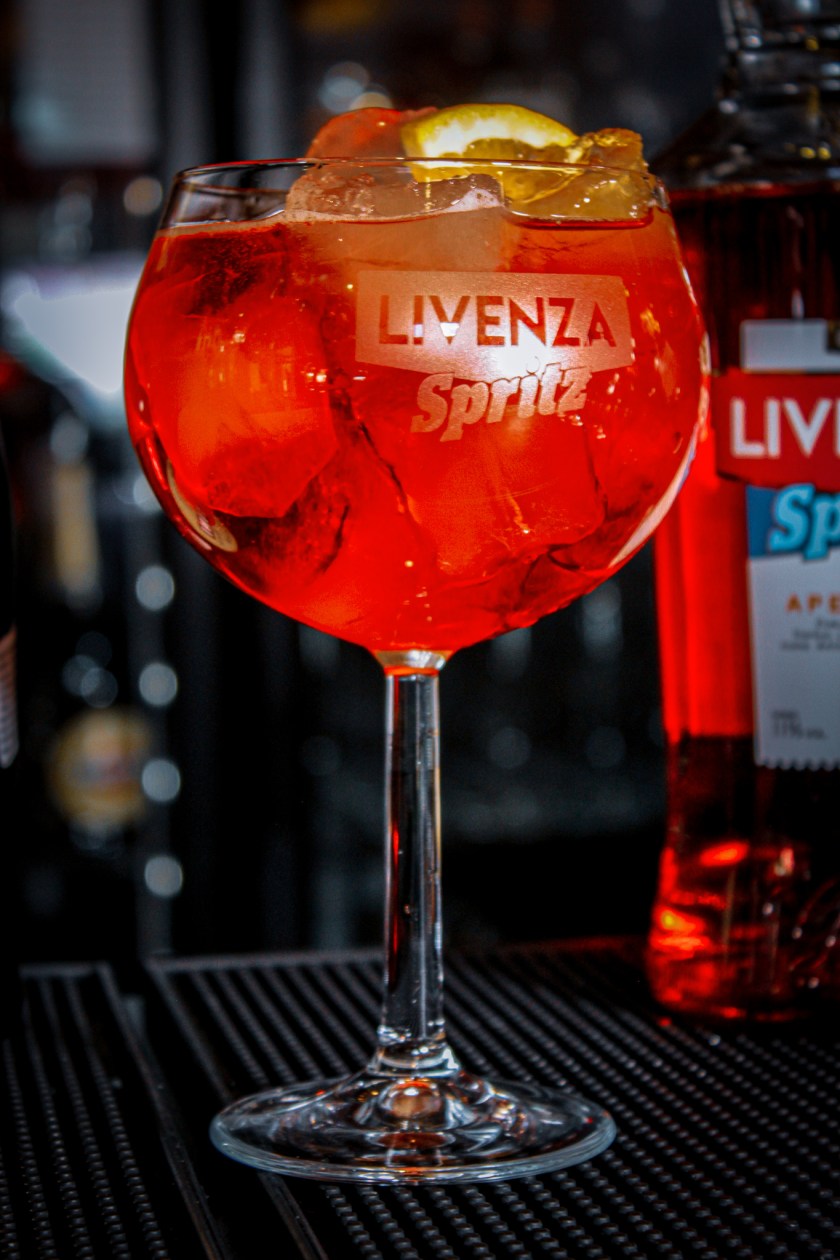 2.- Agregar dos medidas de Livenza Spritz y añadir una medida de agua con gas. Finalmente decorar con una rodaja de naranja y servir.