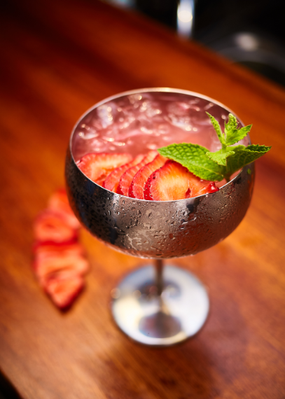 Preparación: En un vaso mezclador añadir 2 frutillas picadas, vodka, triple sec, limón, jarabe simple y hojas de menta. Machacar, luego añadir hielo, revolver y servir. Decorar con limón deshidratado y menta
