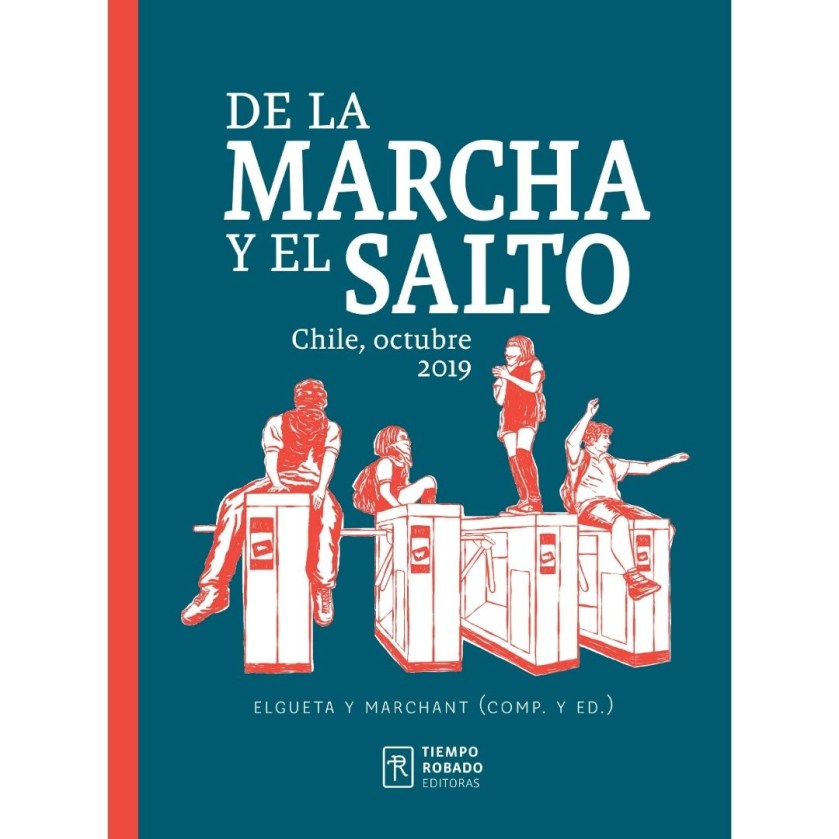 De la marcha y el salto. Chile, octubre de 2019 reúne once artículos y siete entrevistas que abordan las preguntas que se plantearon sus editoras y compiladoras, Gloria Elgueta y Claudia Marchant, para reflexionar en torno al ciclo iniciado con el estallido social. ¿Qué se puede decir acerca del significado de este proceso?, ¿cómo nombrarlo?, ¿qué actores, discursos y programas han estado en juego?, ¿qué experiencias de organización han tenido lugar?, ¿qué tensiones las han atravesado y cómo han sido enfrentadas?, ¿qué lenguajes y símbolos irrumpieron y cómo leerlos? Escritos al calor de los eventos o en medio de la pandemia por Covid-19, estos textos dan luces sobre lo vivido desde octubre y las posibilidades abiertas por la movilización popular.