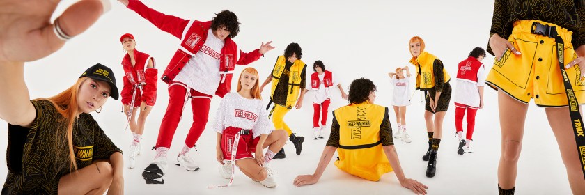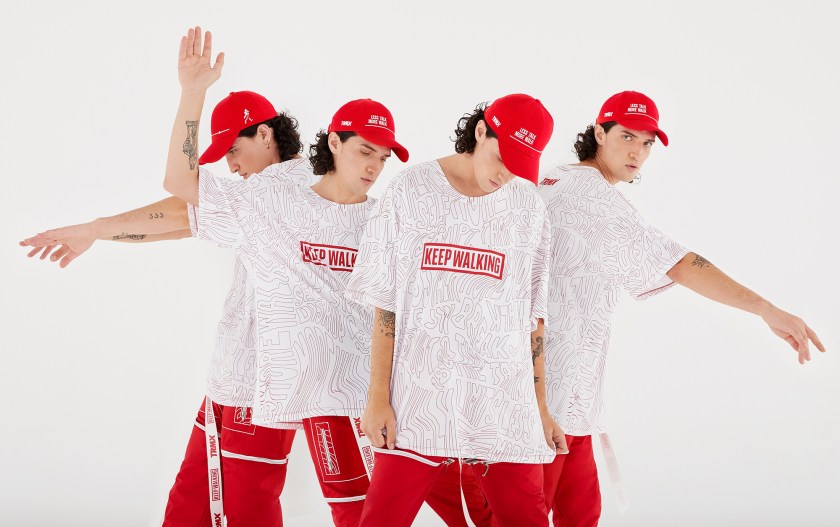 El diseñador tomó los vibrantes colores y la frase insignia de la marca – Keep Walking – para crear cuatro prendas únicas que reflejan movimiento, distorsión y versatilidad en armonía con la comodidad y tendencias urbanas que se ven en las capitales de la moda del mundo. Las prendas fueron producidas usando telas impermeables y de algodón e incorporando detalles bordados.