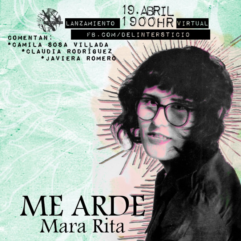 Mara Rita fue escritora, profesora y activista trans. Murió a los 25 años, en abril de 2016, producto de un accidente cerebrovascular. Antes de su partida, estaba finalizando el proceso de escritura de Me Arde, publicación que durante este mes verá la luz, gracias a un trabajo colaborativo de Vicente Martínez; Arheli García, Ex Coordinadora de Extensión FECh y Ediciones del Intersticio.