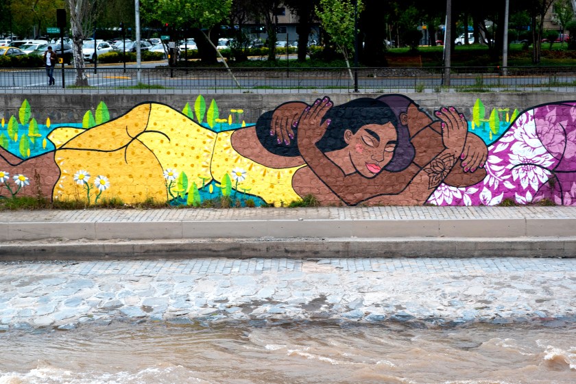 “Abrazo extendido” en Río Mapocho, Santiago de Chile.