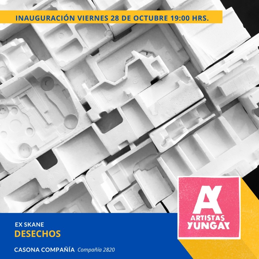 En Casona Compañía, estará exposición “Desecho” del artista Ex Skane, quien trabaja con el material recogido, principalmente EPS de embalaje (poliestireno expandido, conocido como plumavit) para reconfigurarlo y darle una nueva funcionalidad a través del arte.