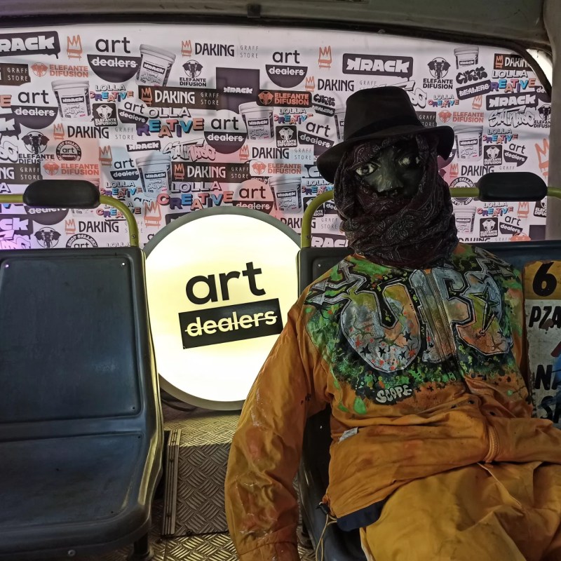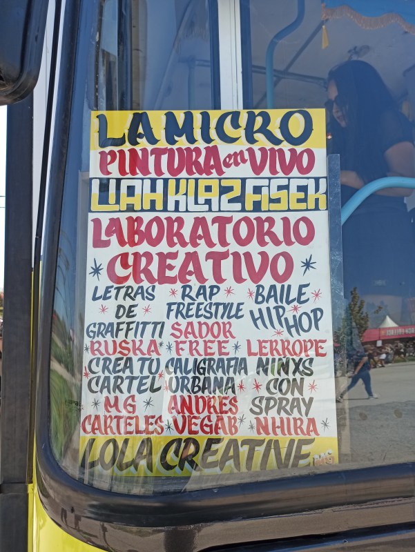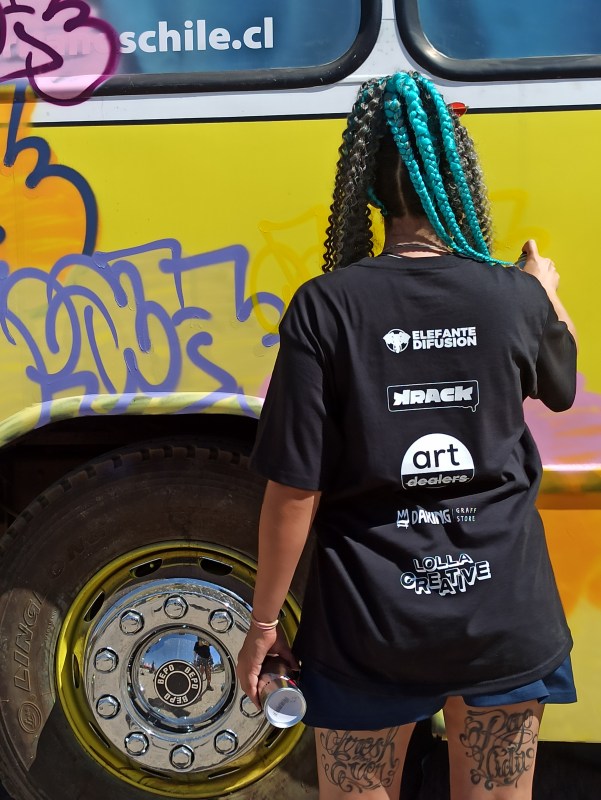 En esta última versión del festival, tuvimos la oportunidad de conversar con algunos de sus destacados participantes. Comenzamos recorriendo la novedosa propuesta de la galería Art Dealers, una clásica micro amarilla: transporte masivo, que por medio de su historia ha visibilizado y acompañado las diferentes expresiones urbanas sobre las murallas, haciéndonos testigos y partícipes del intercambio de interacciones en el territorio y una nueva identidad colectiva en la ciudad contemporánea.
