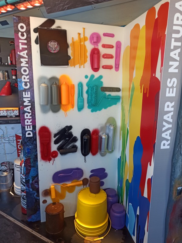 La exposición introduce al graffitti en 5 escenarios, la micro es la excusa del vestigio de un personaje que recorre la ciudad, narrando la necesidad de dibujar y rayar desde la prehistoria , que es un acto muy natural del ser humano. Pasando al color y la composición, que dan vida al siguiente escenario. También se representa en uno de ellos el arsenal del escritor, el kit básico del grafitero. Para luego pasar a la intención de comunicar «ese algo», de transmitir una idea y buscar la propia técnica y estilo, consecuencia del aprendizaje y la experiencia.
