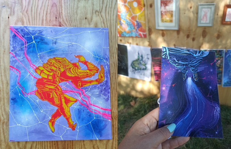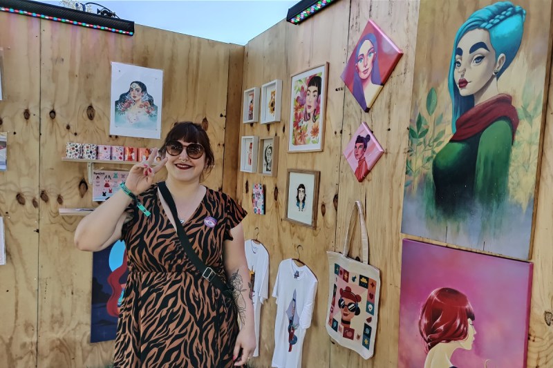 Luna nos contó un poco de su experiencia en Lollapalooza: «había sido invitada a participar en este mismo espacio el año pasado, pero hubo algunos problemas y no se pudo concretar, aunque de todas formas fui parte de la propuesta de Arte y Papel. Ahora pude lograrlo y exponer mi trabajo a través de estos prints de murales e ilustraciones y, también, traje algunos productos para el merchandising, que incluyen mis diseños: tazones, libretas, poleras y un último producto que es un tote bag».