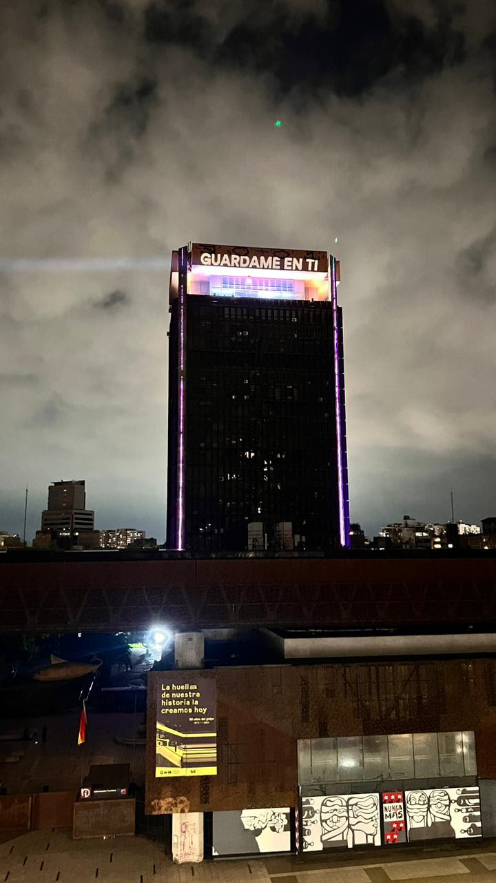 “Guárdame en ti” fue el mensaje con que culminó la intervención artística que durante dos horas iluminó la Torre Villavicencio ubicada detrás de GAM, estructura que palpitó con un juego de luces rojas y blancas y que pudo ser visto desde distintos puntos de la capital la noche del 11 de septiembre.