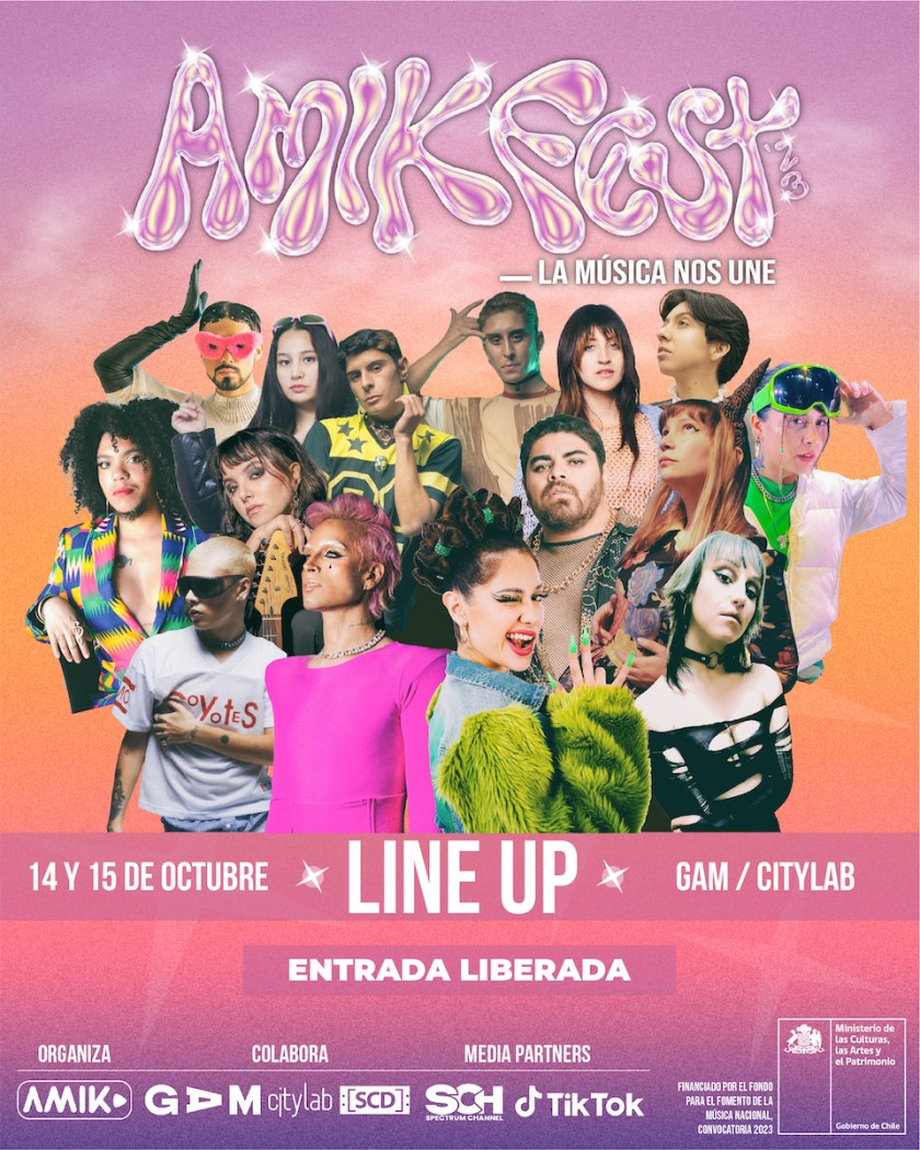La alfombra rosa de AMIK FEST ’23 ya está preparada para recibir a su público este fin de semana en el Centro Gabriela Mistral (GAM). Serán dos jornadas con entrada gratuita con una muestra musical a cargo de 14 propuestas independientes LGBTIQANB+.