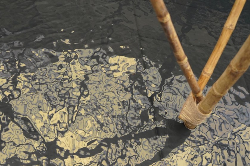 El agua también protagonizó “Tejado de vidrio” en el Museo de Arte Contemporáneo- Quinta Normal, en el primer semestre de este año. El artista aprovechó el enorme tragaluz del clásico edificio para colgar una suerte de réplica de éste – cubierta con malezas nativas – por cuyos vidrios trizados se filtraba agua, cayendo a un gran contenedor en el piso. Allí quiso denotar la inestabilidad de la esfera política y la memoria, que pervive como las plantas silvestres, en un presente en permanente tensión, con sociedades que reclaman coherencia a las instituciones. En estas y otras obras, Corvalán-Pincheira trata el elemento agua como una ilustración patente de las problemáticas medioambientales de la actualidad, muchas que son consecuencia directa de intereses empresariales; y por otra parte remite a las aguas del océano o del río, como lecho/lugar de destino de tantos cuerpos de chilenos y chilenas, hechos desaparecer por la dictadura.