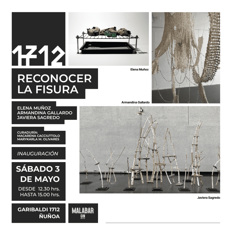 RECONOCER LA FISURA se inaugura el sábado 3 de mayo a las 12:30 hrs. en Galería 1712, Ñuñoa, y puede visitarse de martes a viernes de 11.00 a 14.00 hrs y 16.00 a 19.30. Sábado previo agendamiento.