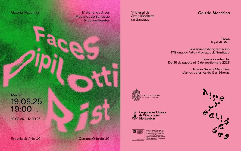 La primera exposición individual en Chile de la reconocida artista suiza Pipilotti Rist, titulada “Faces”, que incluye obras de su etapa inicial, será inaugurada este martes 19 de agosto a las 19 horas en Galería Macchina, y acompañará el lanzamiento oficial de la programación de la 17 Bienal de Artes Mediales de Santiago – Hiperrealidades, que se desarrollará en octubre de 2025 en 20 espacios culturales de la ciudad, con la participación de cerca de 100 artistas.
