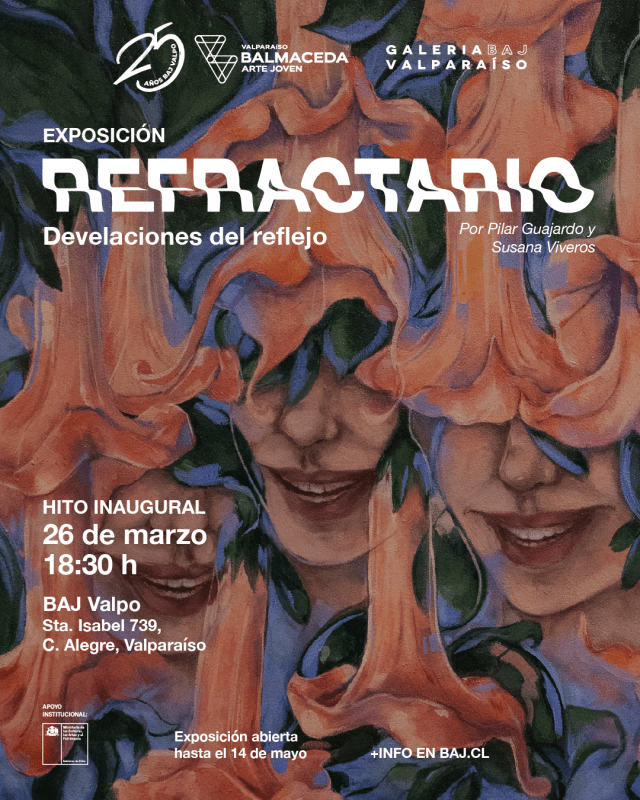 La Galería de Arte de Balmaceda Arte Joven Valparaíso presenta Refractario: Develaciones del reflejo, exposición de las artistas Susana Viveros y Pilar Guajardo. La inauguración se realizará el jueves 26 de marzo a las 18:30 horas, como parte de la programación 2026, en un año especialmente significativo para la institución, que celebra 25 años de trabajo en la región.