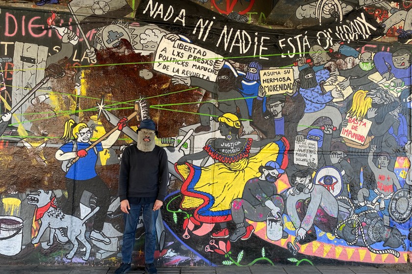 En noviembre pasado viajé a Valparaíso a conocer y conversar con el artista multimedial, Danny Reveco autor del mural «Cuando se acabó Chile» que grafica la historia del «Estallido Social» chileno y se ubica en Nodo Baron. La obra fue vandalizada en dos oportunidades por grupos de extrema derecha y el realizador en vez de restaurarla en su forma original, decidió hacerla trascender y la transformó, casi de manera orgánica, con el acontecer y el contexto. Reveco ha expuesto en diferentes espacios como Centex, Galería Gabriela Mistral y Galería Metropolitana. Su trabajo artístico se lleva a cabo desde lo multimedial (murales-video, performance, instalaciones), visibilizando reflexiones sobre nuestro contexto político actual. Para este artista la calle tiene un potencial como espacio político y eso es lo que experimenta. Su rostro se mantiene oculto tras una particular máscara hecha con retazos de tela que probablemente antes fueron una polera desgastada. Según leí en la descripción publicada por Judas Galería (de la que es parte activa de su catálogo), este «ocultamiento de identidad es una herramienta popular y …